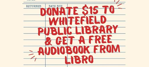 Donate $ 15.00 or more to the Whitefield Public Library (Through WOLF) before 3/01/2026 and get a free audiobook credit from Libro.