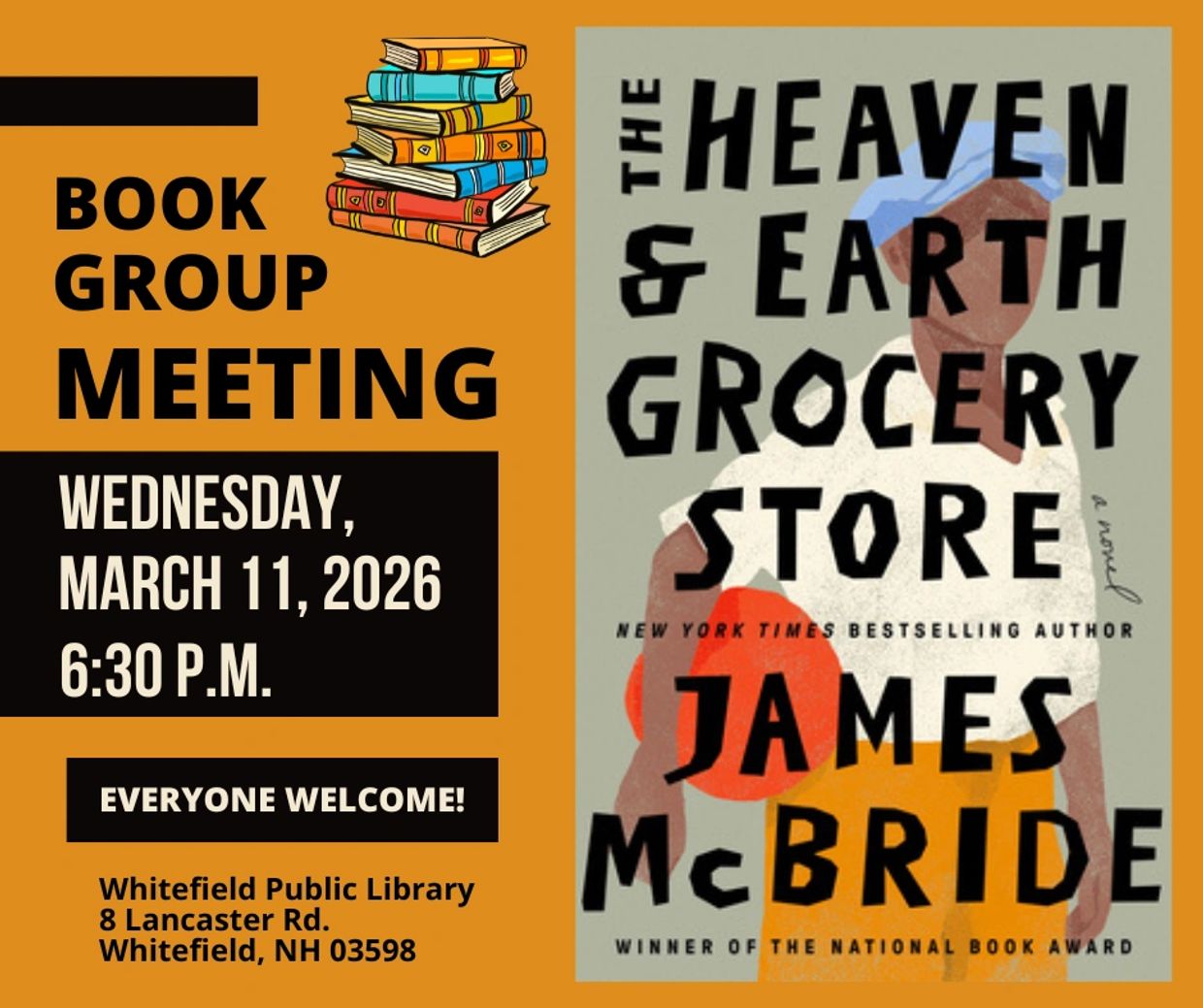 THE HEAVEN & EARTH GROCERY STORE, by James McBride, winner of the National Book Award for The Good Lord Bird, a fictional story about the American abolitionist John Brown.